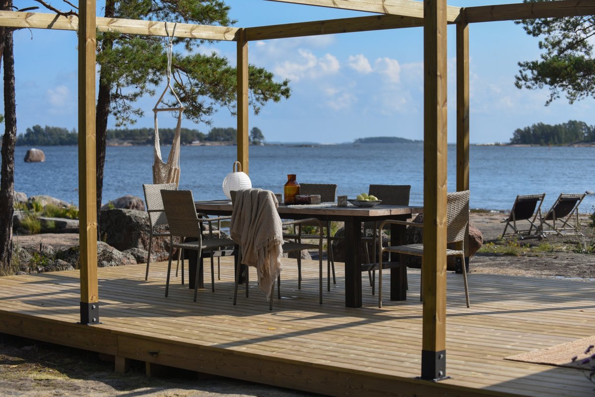 Kesämökkiprojekti on perheen yhteinen harrastus, jossa Niina suunnittelee ja Janne toteuttaa. ”Emme ole alan ammattilaisia, joten olemme oppineet valtavasti rakentamisesta erilaisia projekteja tehdessä. Olemme vieneet lähes kaiken rakennusmateriaalin itse saareen, omalla alle 6 metrin pulpettiveneellä. Haluamme viedä saareen aikaa kestäviä materiaaleja, koska itse rakennustarvikkeiden kuljettaminen on jo oma haasteensa."